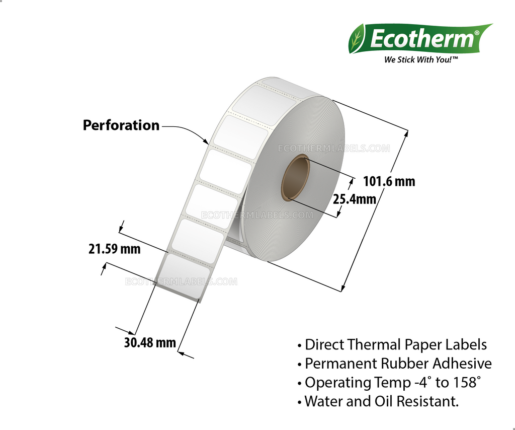 Label Size: 1.20 x 0.85 Inner Core Of Roll: 1" Core Rolls Print Method: Direct Thermal Color: White Material: Paper Perforations: Perforated Adhesive: Rubber Labels Across: 1 Labels Per Roll: 2,200 Rolls Per Case: 4 Labels Per Case: 8,800 Sold By: Sold By The Case