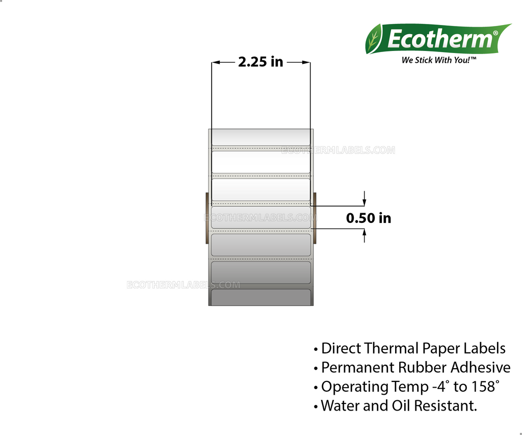 Label Size: 2.25 x 0.50 Inner Core Of Roll: 1" Core Rolls Print Method: Direct Thermal Color: White Material: Paper Perforations: Perforated Adhesive: Rubber Labels Across: 1 Labels Per Roll: 3,460 Rolls Per Case: 4 Labels Per Case: 13,840 Sold By: Sold By The Case