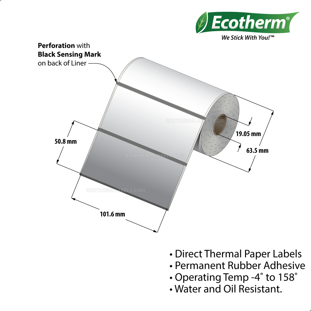 Label Size: 4.00 x 2.00 Inner Core Of Roll: 0.75" Core Rolls Print Method: Direct Thermal Color: White Material: Paper Perforations: Perforated Adhesive: Rubber Labels Across: 1 Labels Per Roll: 300 Rolls Per Case: 25 Labels Per Case: 7,500 Sold By: Sold By The Case